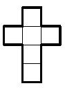 Первый способ. Заметим, что в указанной развёртке противоположными гранями являются крайние по горизонтали, а также первая и третья сверху по вертикали. Поэтому, независимо от расположения чисел на развёртке, разностью между суммами по вертикали и по горизонтали является число, записанное в нижнем квадрате. Следовательно, Васе надо разрезать кубик так, чтобы в этом квадрате была записана цифра 1. В этом случае на пересечении полос будет цифра 6, одна из пар (2, 5) и (3, 4) окажется на горизонтали, а другая – на вертикали, например так, как показано на рисунке.