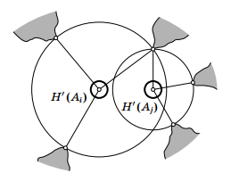 Пусть есть пять особых точек A1, ..., A5. Тогда у каждой из них есть меньшая сферическая "шапочка" H'(Ai), не пересекающаяся ни с какой сферической дугой AjX, где j ≠ i и X – точка суши, ближайшая к Aj (см. рис.). Можно считать, что "шапочки" H'(Ai) попарно не пересекаются и не касаются.