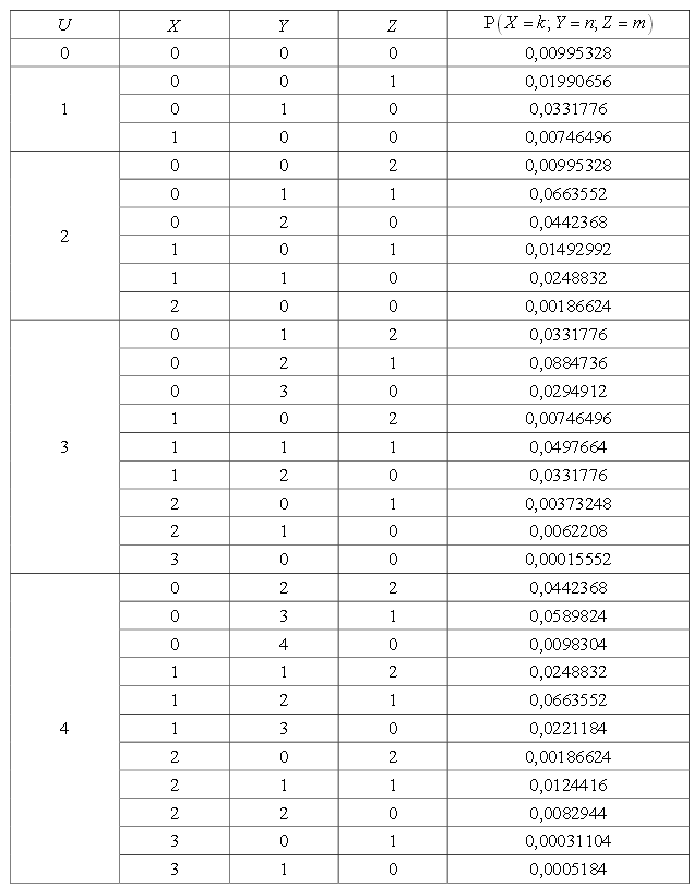 Запишем таблицы распределения случайных величин X, Y и Z.