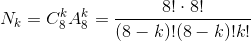 – количество способов выбрать k дней из восьми с учетом порядка, так как каждый из дней должен относиться к одному из городов).