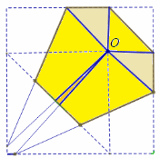 Небольшое геометрическое исследование показывает, что в результате может получиться шестиугольник, пятиугольник и четырёхугольник. Четырёхугольник получается, только если точка O попала точно в центр или в вершину квадрата. Вероятность этого равна нулю.