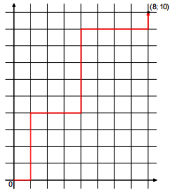 . В точку (6, 6) из точки (5, 6) ведёт только один путь. Затем муха должна пройти из точки (6, 6) в точку (8, 10), и здесь у неё