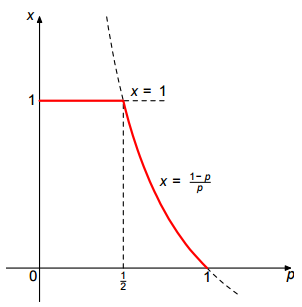 Вначале популяция находится в состоянии 1, и нас интересует вероятность перехода 1 → 0, то есть как раз значение x.