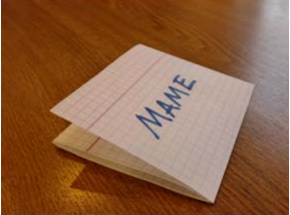 Вася написал на листке бумаги записку, сложил её вчетверо, надписал сверху "МАМЕ" (см. фото). Затем он развернул записку, дописал ещё кое-что, опять сложил записку по линиям сгиба случайным образом (не обязательно, как раньше) и оставил на столе, положив случайной стороной вверх. Найдите вероятность того, что надпись "МАМЕ" по-прежнему сверху.