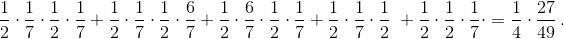 Учитывая, что вероятность родиться в понедельник равна 1/7, а в другой день – 6/7, находим, что суммарная вероятность возможных последовательностей равна