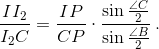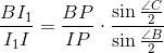 Поскольку PI, PI1 и PI2 – биссектрисы углов BPC, BPU и UPC соответственно, ∠BPI1 = ∠IPI2 = ½ ∠C и ∠I1PI = ∠I2PC = ½ ∠B. Применяя теорему синусов к треугольникам BPI1, I1PI, IPI2 и I2PC, получаем