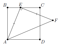 Квадрат ABCD и равнобедренный прямоугольный треугольник AEF (∠AEF = 90°) расположены так, что точка E лежит на отрезке BC (см. рисунок). Найдите угол DCF.