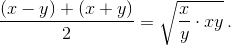 С помощью перебора найдём на доске пару чисел a < b, чьё среднее арифметическое равно среднему геометрическому оставшейся пары чисел c и d. Ниже мы докажем, что такое разбиение единственно (с точностью до перестановки равных чисел), поэтому a = x – y, b = x + y, откуда x = ½ (a + b), y = ½ (b – a).