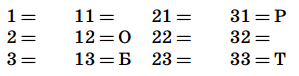 Рассмотрим слово РОБОТ = 3112131233. В нём 5 букв и 10 цифр, так что все коды двузначные и определяются без труда. Напишем все двенадцать возможных кодов и те буквы, которые мы точно знаем: