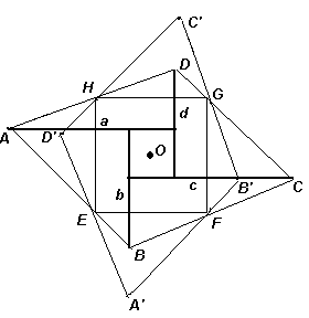 Пусть О – центр квадрата ЕFGН. Достаточно доказать, что повороте с центром О на 90° вершины получившегося четырёхугольника переходят друг в друга.