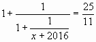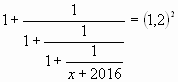 Решите уравнение 1 + 1 : (1 + 1 : (1 + 1 : (x + 2016))) = (1,2)².