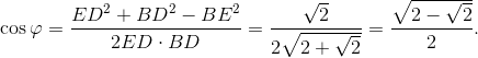 Решение 2: Пусть длины всех сторон пятиугольника равны 1. Из треугольника BDC находим, что ∠BDC = 12,5°. Обозначим ∠BDE = φ. По теореме косинусов