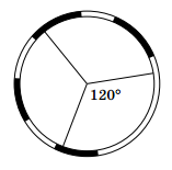 Предположим, что доля максимальна у k ≥ 3 членов клуба. Опишем алгоритм, позволяющий всем членам клуба выпить весь принесённый сок. Пусть Δ – разница в объеме сока между максимальной и следующей по величине долями. Члены клуба с максимальной долей поочередно пьют в тройках "по кругу" (сначала первый со вторым и третьим, затем второй с третьим и четвёртым и т.д., а в конце – k-й с первым и вторым), при этом каждая тройка выпивает по Δ/3. После этого количество членов клуба с максимальной долей увеличивается по крайней мере на одного. Так продолжаем до тех пор, пока доли всех членов клуба не станут одинаковыми. Далее все допивают остаток таким же способом – в тройках "по кругу". Второй способ. Разобьём окружность единичной длины на n дуг, длины которых равны соответственно долям сока, принесённого каждым из n членов клуба. Расположим в круге тройник – фигуру из трёх радиусов, образующих попарно углы в 120° (см. рис.). Поскольку длина каждой дуги не превосходит 1/3, ни при каком положении тройника разные его концы не будут указывать на внутренние точки дуги, соответствующей одному члену клуба.