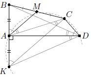 AM || CK. Значит, ∠BKC = ∠BAM = ∠ADC. Отсюда следует, что четырёхугольник AKDC вписан.