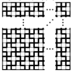 Решение 2: Назовём требуемую фигурку T-тетрамино. Разобьём наш квадрат на фигурки (см. рис.). Нетрудно подсчитать, что вне "полных" крестов окажется ровно 4·100 = 400 клеток, из которых 320 будут находиться в T-тетрамино разбиения. Итого, в разбиении есть (100² – 400) : 5 = 1920 полных крестов и ещё 80 T-тетрамино.