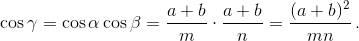 α < 45° и β < 45°. Следовательно, γ < α + β < 90°. Теперь достаточно проверить, что sin (α + β) = cos γ.