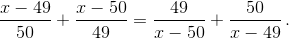 2) Равны знаменатели полученных дробей, то есть 50·49 = (x – 50)(x – 49). Два решения – x = 0 и x = 99 – очевидны. Поскольку это – квадратное уравнение, то других решений нет.