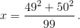 1) Числители полученных дробей равны нулю, то есть 99x = 492 + 502. Тогда
