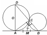 Пусть общая внутренняя касательная к данным окружностям пересекает прямую АВ в точке M (см. рис.).