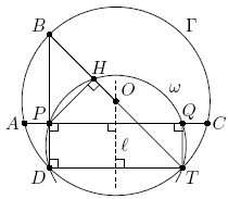 Проведём в окружности Г диаметр BT (см. рис.). Точки H и D лежат на окружности с диаметром PT, значит, она совпадает с ω. Поэтому