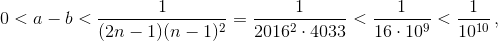 Поскольку a2n – b2n = (a – b)(a2n–1 + a2n–2b + ... + ab2n–2 + b2n–1) > 2n(a – b), то (2n – 1)(a – b) ≤ a2n – b2n – (a – b) < 1/(n–1)². Таким образом,