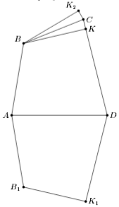 Возьмём четырёхугольник ABCD, в котором угол B тупой, а остальные острые. Пусть K – такая точка на стороне CD, что ∠CBK < 180° – ∠B, точки B1, K1 симметричны B, K относительно AD, а K2 симметрична K относительно BC. Тогда семиугольник ABK2CDK1B1 выпуклый, и, согнув его по прямым BC и AD, получим двухслойный четырёхугольник ABCD (см. рис.).