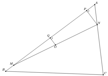 Решение 2:Пусть P – точка на описанной окружности треугольника ABC, диаметрально противоположная точке A. Точка O делит пополам отрезки AP и MN, значит, AMPN – параллелограмм. Углы A и BMP равны, так как AC || MP. Угол ABP прямой, так как опирается на диаметр AP. Итак, треугольник BMP прямоугольный с углом 60°, значит, AN = MP = 2MB.