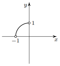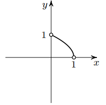 2) x ≤ 0 или x ≥ 1, 0 < y < 1. Тогда равенство примет вид x² + y² = 1. При x ≥ 1 равенство выполняться не может, значит, график – четверть окружности с выколотыми концами (рис. в центре).