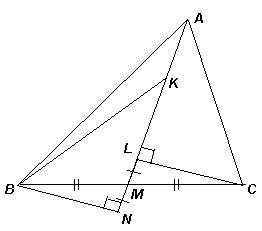 На продолжении отрезка LM отметим точку N так, что NM = LM (см. рисунок). Тогда треугольники CLM и BNM равны (по двум сторонам и углу между ними). Следовательно, ∠BNM = ∠CLM = 90° и BN = CL.