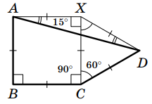 ∠ADC = ∠XDC – ∠XDA = 60° – 15° = 45°.