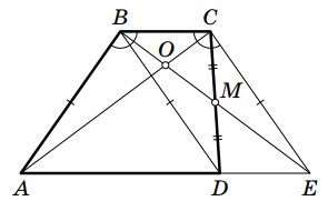 Про трапецию ABCD с основаниями AD и BC известно, что AB = BD. Пусть точка M – середина боковой стороны CD, а O – точка пересечения отрезков AC и BM. Докажите, что треугольник BOC – равнобедренный.