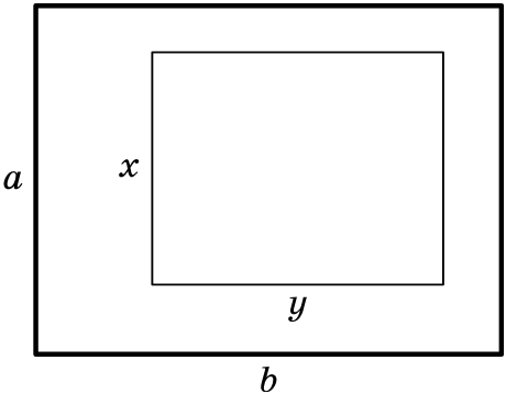 Если бы дырки не было, было бы a горизонтальных полосок. Дырка разрезает x из них на две части, так что всего горизонтальных полосок a + x, что по условию равно 20. Аналогично вертикальных полосок будет b + y. Но a + b + x + y = 25 + 16 = 41 и a + x = 20. Значит, b + y = 41 − 20 = 21.