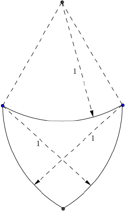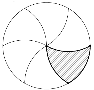 Король Артур хочет заказать кузнецу новый рыцарский щит по своему эскизу. Король взял циркуль и нарисовал три дуги радиусом $1$ ярд так, как показано на рисунке. Чему равняется площадь щита? Ответ округлите до сотых. Напомним, что площадь круга радиуса $r$ равна $\pi r^2$, $\pi\approx 3,14$.