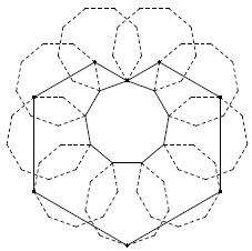 Правильный $n$-угольник со стороной 1 вращается вокруг другого такого же $n$-угольника, как показано на рисунке. Последовательные положения одной из его вершин в моменты, когда $n$-угольники имеют общую сторону, образуют замкнутую ломаную $\kappa$.