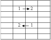 Второй способ Заменим числа на их остатки от деления на $n$ и проведём стрелку из каждой клетки с единицей в соседнюю клетку с двойкой. У нас имеется $n$ стрелок, соединяющих единицы и двойки. У некоторых стрелок могут быть парные – стрелки противоположного направления, занимающие те же два ряда (см. рисунок). Но число стрелок нечётно, поэтому найдётся стрелка без пары.