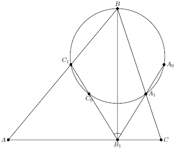 Пусть прямые $AA_0$ и $BC$ пересекаются в точке $X$, а прямые $CC_0$ и $AB$ – в точке $Y$. Достаточно доказать, что $BX:XC=BY:YA$. Поскольку центр окружности $A_1BC_1$ лежит на прямой $BB_1$, являющейся биссектрисой угла $A_1B_1C_1$, точки $A_0$ и $C_1$ симметричны относительно прямой $BB_1$, так же, как и точки $A_1$ и $C_0$.