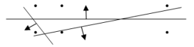 (На рисунке изображены два нижних слоя лампочек, стрелки указывают по какую сторону от прямой зажигаются лампочки.)