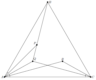 В равнобедренном треугольнике $ABC$ ($AB=BC$) проведен луч $l$ из вершины $B$. На луче внутри треугольника взяты точки $P$ и $Q$ так, что $\angle BAP=\angle QCA$. Докажите, что $\angle PAQ=\angle PCQ$.