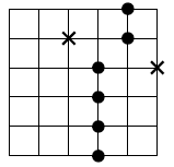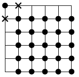 Лабиринт для мышей (см. рисунок) представляет собой квадрат 5 × 5 метров, мыши могут бегать только по дорожкам. На двух перекрёстках положили по одинаковому куску сыра (обозначены крестиками). На другом перекрёстке сидит мышка (обозначена кружочком). Она чует, где сыр, но до обоих кусочков ей нужно пробежать одинаковое расстояние. Поэтому она не знает, какой кусочек выбрать, и задумчиво сидит на месте.