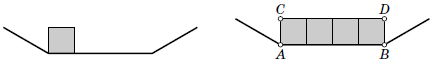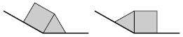 Если это треугольник (см. рис. ниже слева), то несложно видеть, что все оставшиеся фигуры разбиения, которые примыкают к этой стороне, – тоже треугольники, потому что образующиеся углы 120° можно замостить только двумя треугольниками (см. рис. ниже справа). Таким образом, к каждой стороне многоугольника $M$ примыкают либо только квадраты, либо только треугольники.
