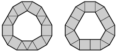 Итого получается два варианта каёмки: равносторонние треугольники расположены вдоль всех нечётных сторон, а квадраты – вдоль всех чётных; или наоборот. В первом варианте характеристикой $M_1$ будет набор $(a_1 - 1, a_2, a_3 - 1, a_4, ..., a_{11} - 1, a_{12})$, а во втором – набор $(a_1, a_2 - 1, a_3, a_4 - 1, ..., a_{11}, a_{12} - 1)$.