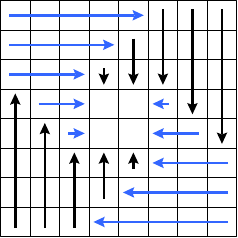 Примеры для $k=5$ могут быть устроены по-разному. Один из вариантов изображён на рисунке (длинные стрелки означают, что несколько сторожей подряд смотрят в одну сторону, сторожа в центре могут смотреть в любую сторону).