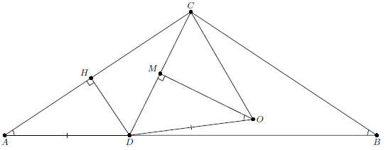 Пусть $O$ – центр описанной окружности треугольника $BCD$, $M$ – середина $CD$, $H$ – проекция $D$ на $AC$. Тогда $\angle DOM=\angle DOC/2=\angle DBC=\angle DAC$ и $DO=DA$.