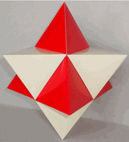 Рассмотрим звёздчатый октаэдр (см. рисунок). Его можно рассматривать как объединение двух правильных тетраэдров с общим центром, пересекающихся по октаэдру, или как октаэдр, у которого «продлены» грани. В центре каждой грани обоих тетраэдров поместим лампочку и возьмём круги, содержащие эту грань. Ясно, что все лучи не выйдут за пределы звёздчатого октаэдра и тем более за пределы наших кругов.
