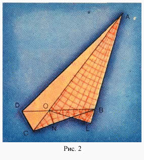 Обозначим круги с центрами A, B, C, D в вершинах данного четырехугольника ABCD через KA , KB , KC , KD , их радиусы – через rA , rB , rC , rD. Предположим, что утверждение задачи неверно. Тогда каждый круг имеет общую точку с частью противоположного ему треугольника, не покрытой тремя другими кругами: например, KA должен содержать точки Δ BCD, не покрытые ни одним из кругов KB , KC , KD. Пусть O – точка пересечения диагоналей. Докажем при нашем предположении, что rA ≥ OA , т.е. что круг KA содержит точку O . Остальное уже ясно: точно так же можно будет доказать, что точка O принадлежит KB и KC , а отсюда очевидным образом следует, что эти круги покрывают Δ ABC. Посмотрите на рис. 1, 2: если OL и ON – перпендикуляры, опущенные на прямые AB и BC, то KA покрывает Δ OAL, KC – Δ OCN, KB – Δ OBL и Δ OBN, а эти четыре прямоугольных треугольника заведомо покрывают Δ ABC, даже если один из треугольников AOB или OBC (как на рис. 2) тупоугольный. Приходим к противоречию с нашим предположением, следовательно, утверждение задачи верно. Итак, осталось доказать, что rA ≥ OA . Нам понадобится следующая, почти очевидная Лемма. Пусть задан выпуклый четырехугольник PQRS и круг KR (не содержащий Δ PQR целиком). Тогда из всех точек, лежащих внутри Δ PQR и вне KR , ближайшей к точке S будет: а) основание F перпендикуляра SF , опущенного из точки S на прямую PR , если эта точка F лежит вне круга KR (рис. 3, а); б) точка E пересечения окружности KR с отрезком PR , если точка F лежит внутри круга KR (рис. 3, б). (Здесь важно, что угол QRS четырехугольника меньше 180°; доказательство леммы оставляем читателю.) Можно считать, что Предположим, что rA<OA и E – ближайшая к O точка KA (она лежит на отрезке OA и AE=rA , EM – перпендикуляр, опущенный из E на BD . Ясно, что тогда AM>AE . Докажем, что тем не менее rA>AM , отсюда будет следовать, что наше предположение ( rA<OA ) неверно. Докажем сначала, что rB > BM . Применим лемму к Δ ACD, кругу KA и точке B. Рассмотрим два случая: а) E лежит между A и B1 . Тогда rB > BB1 > BA2 ≥ BM; б) E лежит между O и B1. Тогда (по лемме) rB > BE > BM. Итак, мы знаем, что точка M принадлежит KB. Применяя лемму к Δ BCD , кругу KB и точке A (заметим, что M лежит между O и A1, так что всегда имеет место случай б)), получим rA>AM . Круг замкнулся, требуемое противоречие получено. |