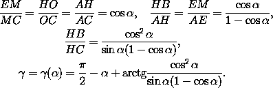 Для этого выразим γ как функцию от α . Проведем HE | BM ( E — точка на AC ). Тогда (рис. 7)