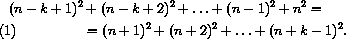 (При переходе от(3) к(4) мы воспользовались тем, что сумма(k-1)членов арифметической прогрессии(2n-k+2)+(2n-k+4)+...(2n+k-2)равна(k-1) ((2n-k+2)(2n+k-2))/2=2(k-1)n .) Тем самым мы