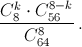 Число случаев, в которых оказались угаданными ровно k клеток равно числу способов, при которых выбираются k клеток из 8 отмеченных и 8 – k клеток из 56 неотмеченных, то есть