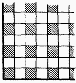 а) Расчертим дно коробки на квадратики размера 1×1 и отметим те квадратики, которые стоят на нечётных местах в нечётных рядах (см. рис.).