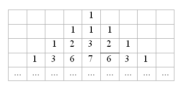 а) Будем в нашей таблице вместо чётных чисел писать 0, а вместо нечётных – 1. Тогда таблицу из нулей и единиц нужно будет составлять по тому же правилу (каждое число получается как сумма трёх, стоящих над ним в предыдущей строке), только сложение нужно выполнять по модулю два.